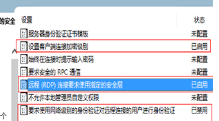 1、“开始”处运行gpedit.msc打开:本地计算机策略->计算机配置->管理模板->windows组件->远程桌面服务->远程桌面会话主机->安全