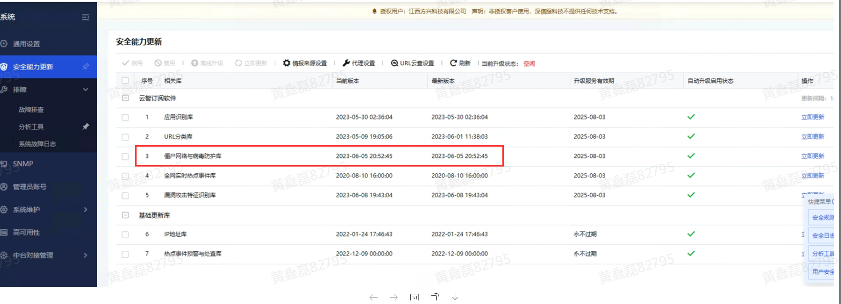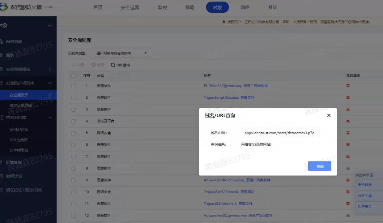 情况二:检查url规则库版本为0509,僵尸网络防病毒库为0605,此时僵尸网络防病毒库更新了此域名将其拉黑,若要恢复需要回退僵尸网络防病毒库,或单独加白解决,若不影响业务可继续往下看,清楚原理后给客户解释即可;