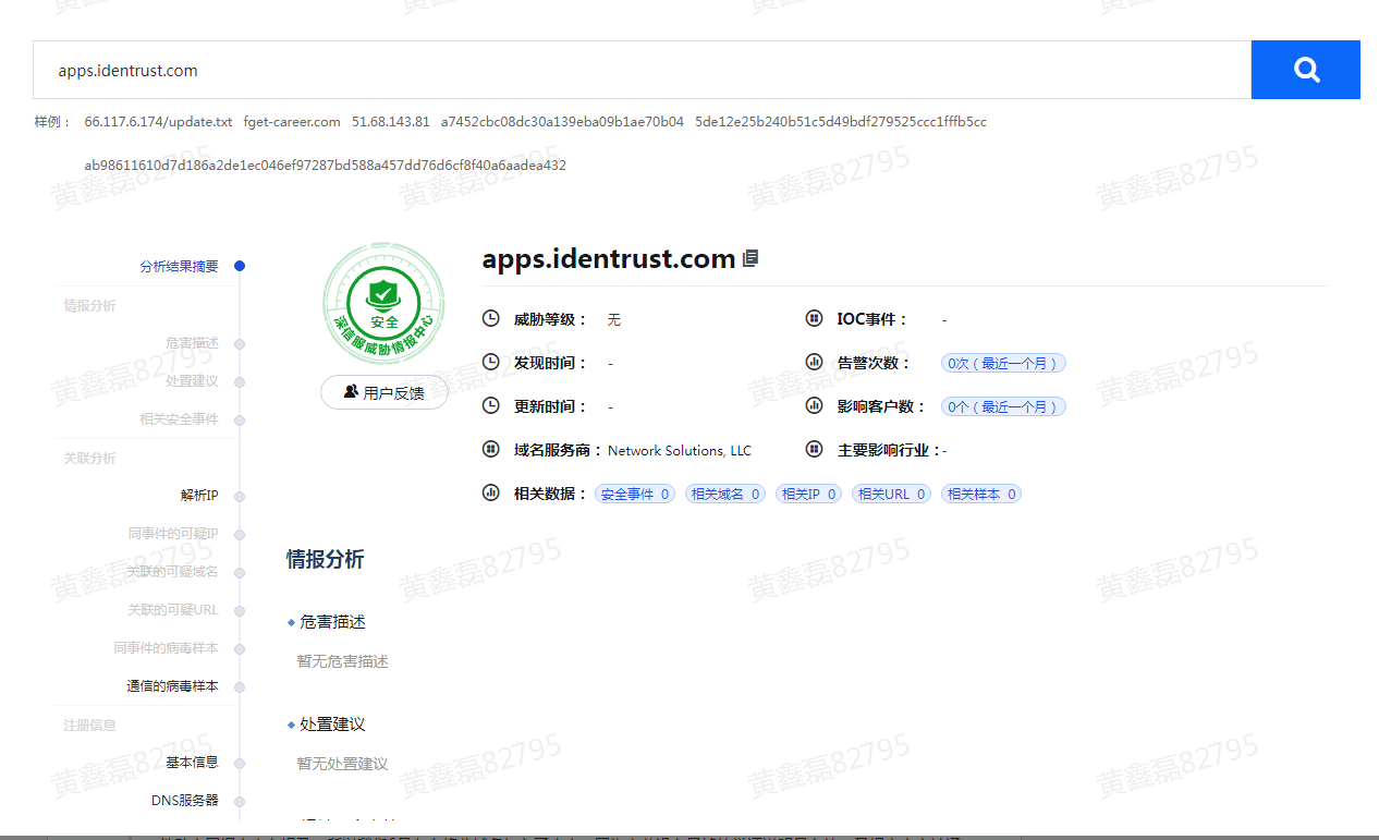 2、在URL库里面对apps.identrust.com/roots/dstrootcax3.p7c和apps.identrust.com查询是属于IT相关