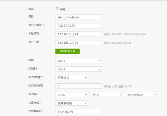 ⑵IKE存活时间,默认是3小时,深信服默认是3600S,需要修改成一致;