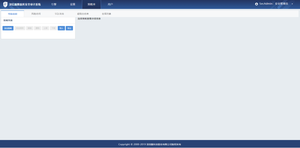 深信服数据库安全审计系统DAS(Database security Audit System )是深信服基于对用户数据资产防护的不断探索,创新地将数据安全防护与大数据分析结合的产物,它能为用户提供完整的数据库审计分析、泄密轨迹分析、数据库访问关系可视、数据库攻击威胁分析。