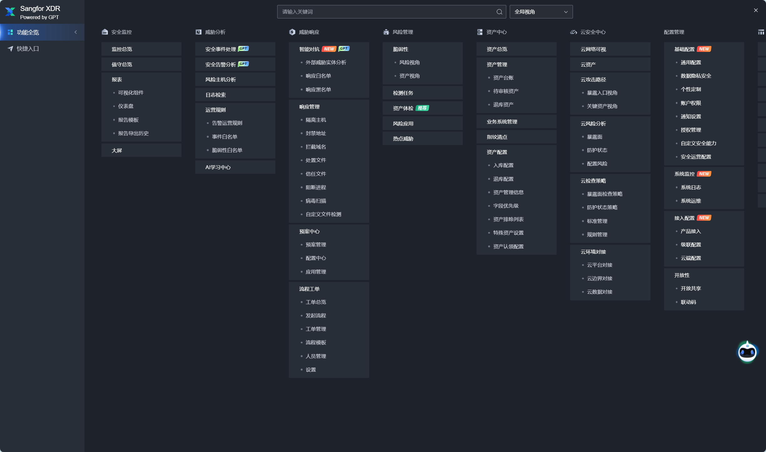 {{sendMatomoQuery("可扩展检测与响应平台(SAAS XDR+GPT)","功能全览")}}