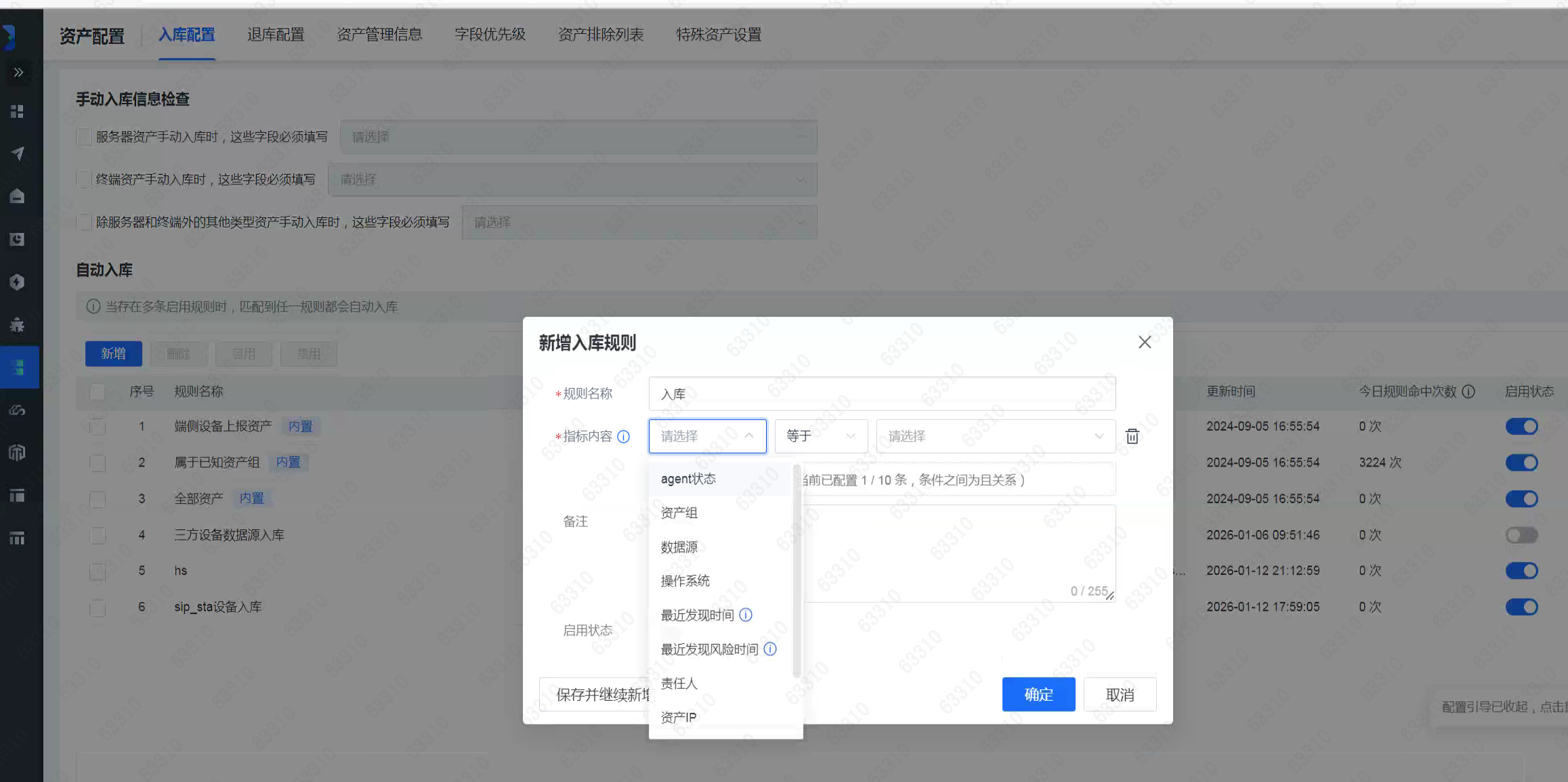 支持通过配置agent状态、资产组、资产IP、数据源等参数