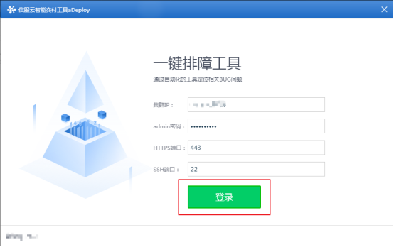 3.输入正确的集群IP,admin密码,HTTPS端口,SSH端口,点击登录