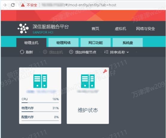 2.登录需要执行硬件处置的HCI环境(执行固件升级操作需要将对于的HCI环境切换为单主机维护模式后操作,登录需要主控或集群IP)。