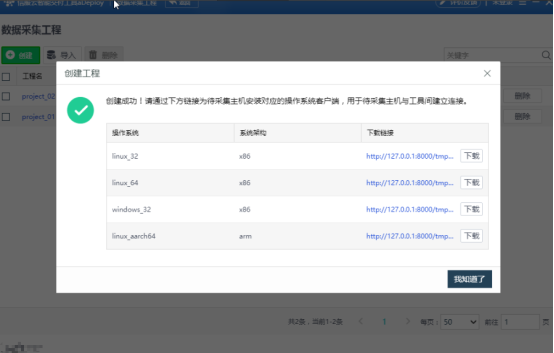 3、创建工程名,配置工程采集配置项、采集频率、采集周期,选择确认后创建工程