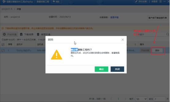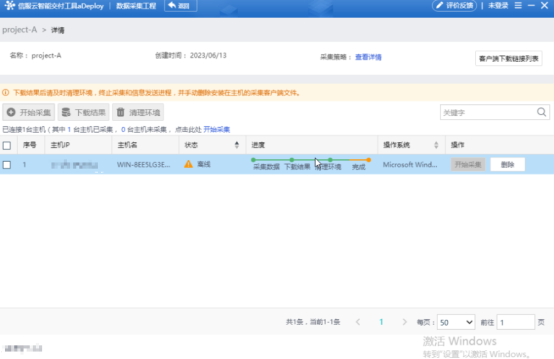 5、通过创建成功的工程,单击工程名进入到工程详情界面,选择需要进行信息收集的主机,通过开始采集对客户主机信息进行收集