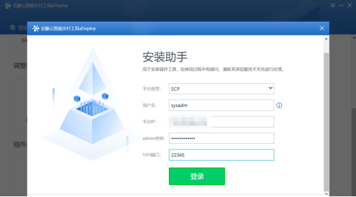 • 用户名:SCP6.3.0以前的版本后台用户名为root,SCP6.3.0及之后版本后台用户名为sysadm
