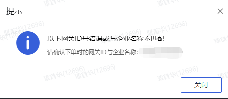 ②如果提示“以下网关ID号错误或与企业名称不匹配”,需要联系云图技术支持处理
