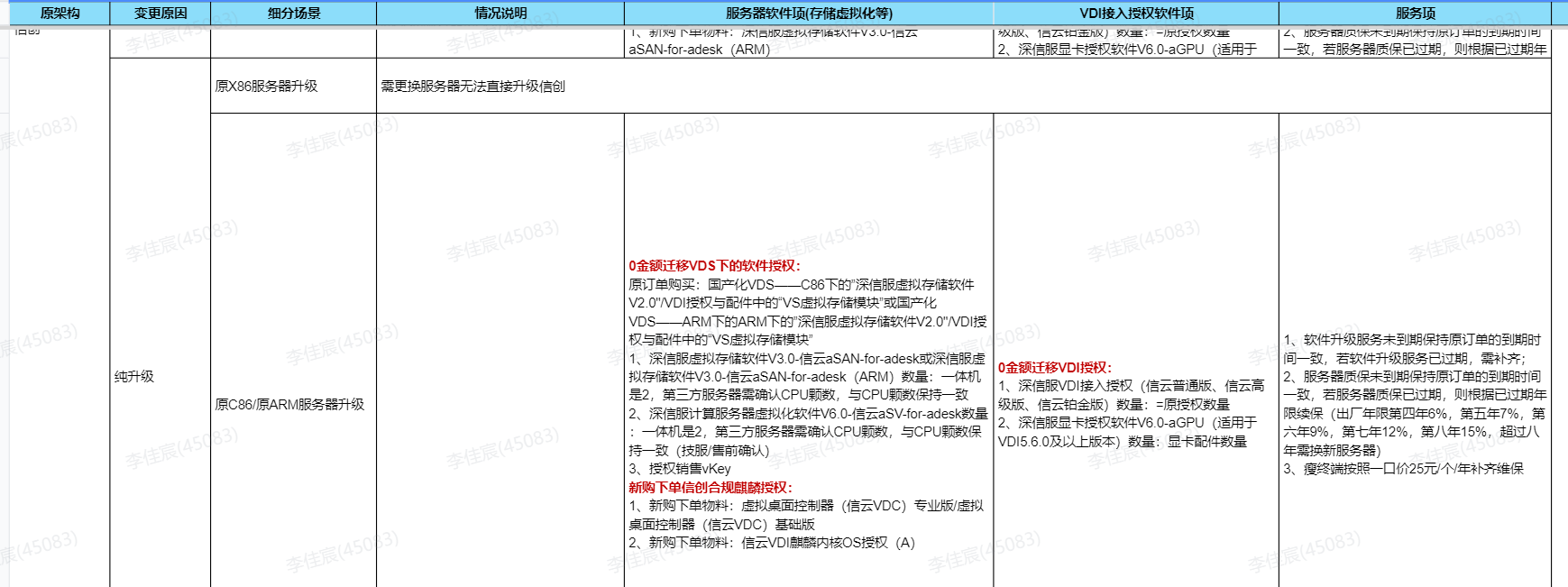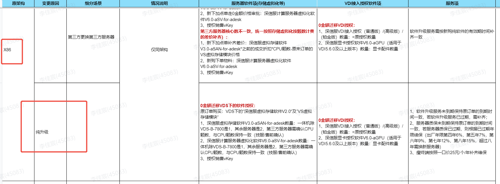 (1)使用《桌面云不同场景下的付费变更逻辑》,查看X86和信创场景下的授权变更逻辑:
