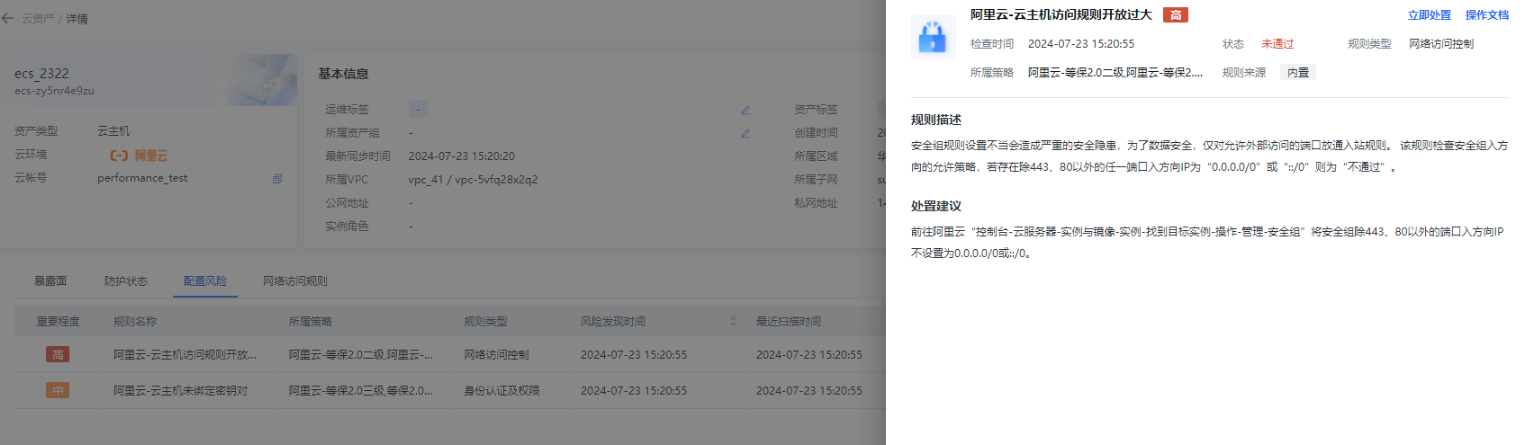 资产详情中能展示资产的基本信息以及暴露风险和配置风险的详情: