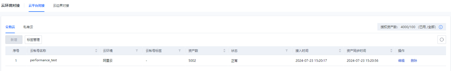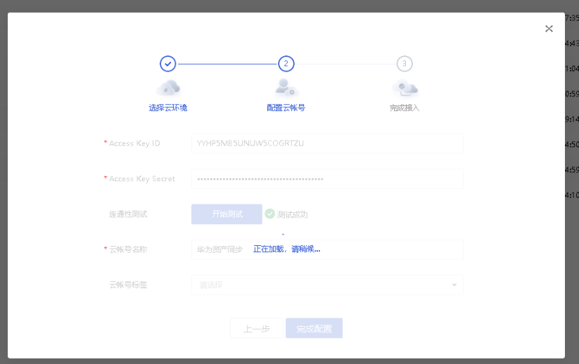 第一次接入云账号的时候,系统会自动同步对应云账号对应云上资产,如下图所示: