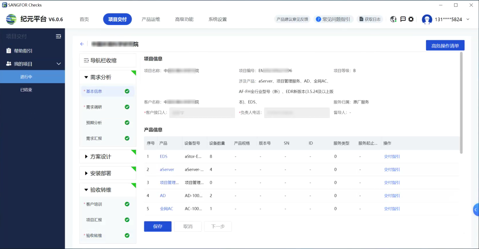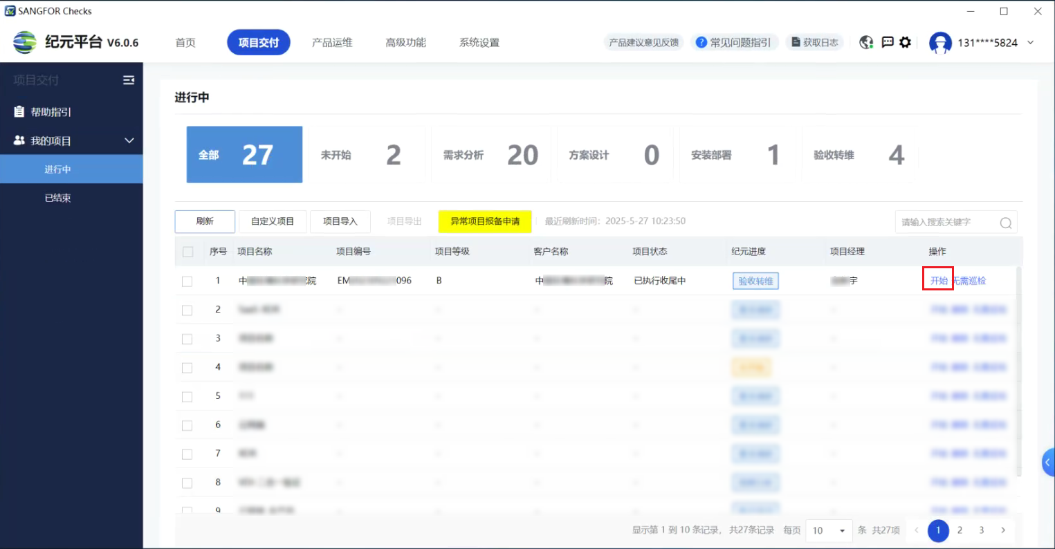 ● 选择需要进行交付的项目,点击【开始】进入到项目后,可以看到该项目的基本信息