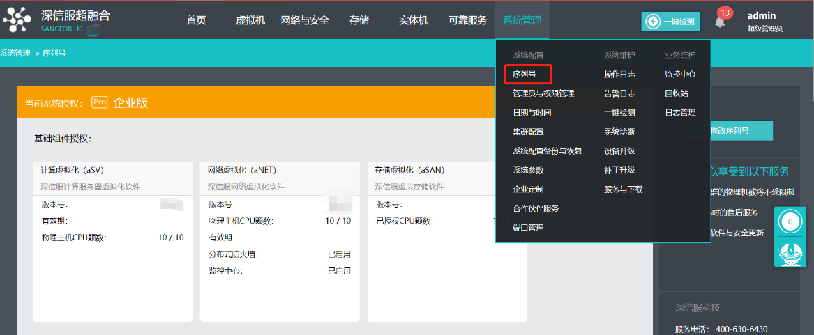 2.把授权KEY插入到集群的主控上,然后点击进入“序列号”页面。