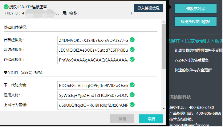 3.点击【激活授权】 ,选择【USB-key授权】页面, 导入授权文件(如已激活则显示更新序列号或更新授权)