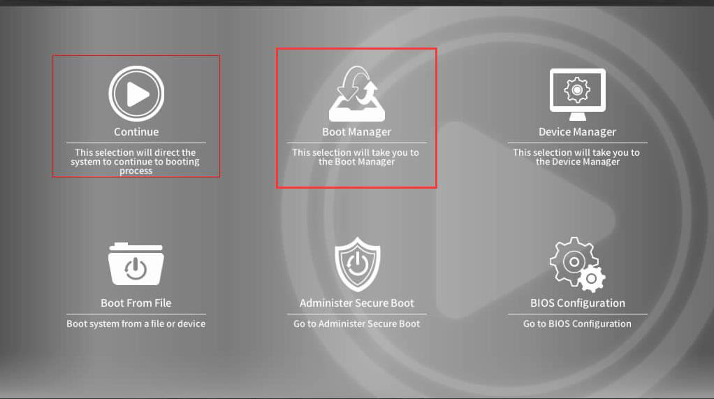 1.2、适用F*H\210\F*I 设备,设备进到Bios后选择Boot Manager,进去后找到插入U盘名回车