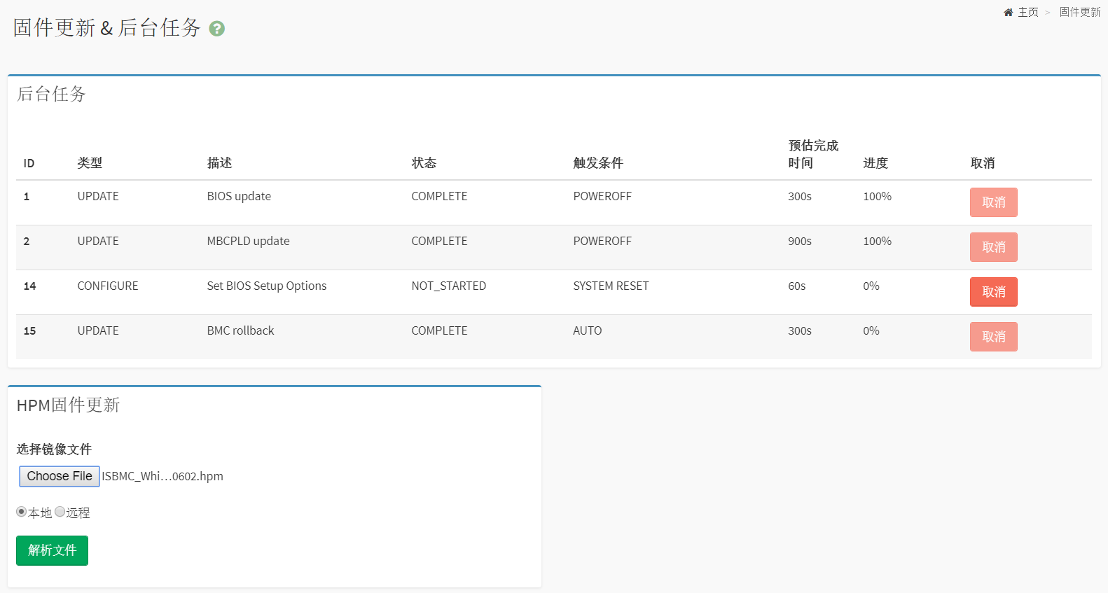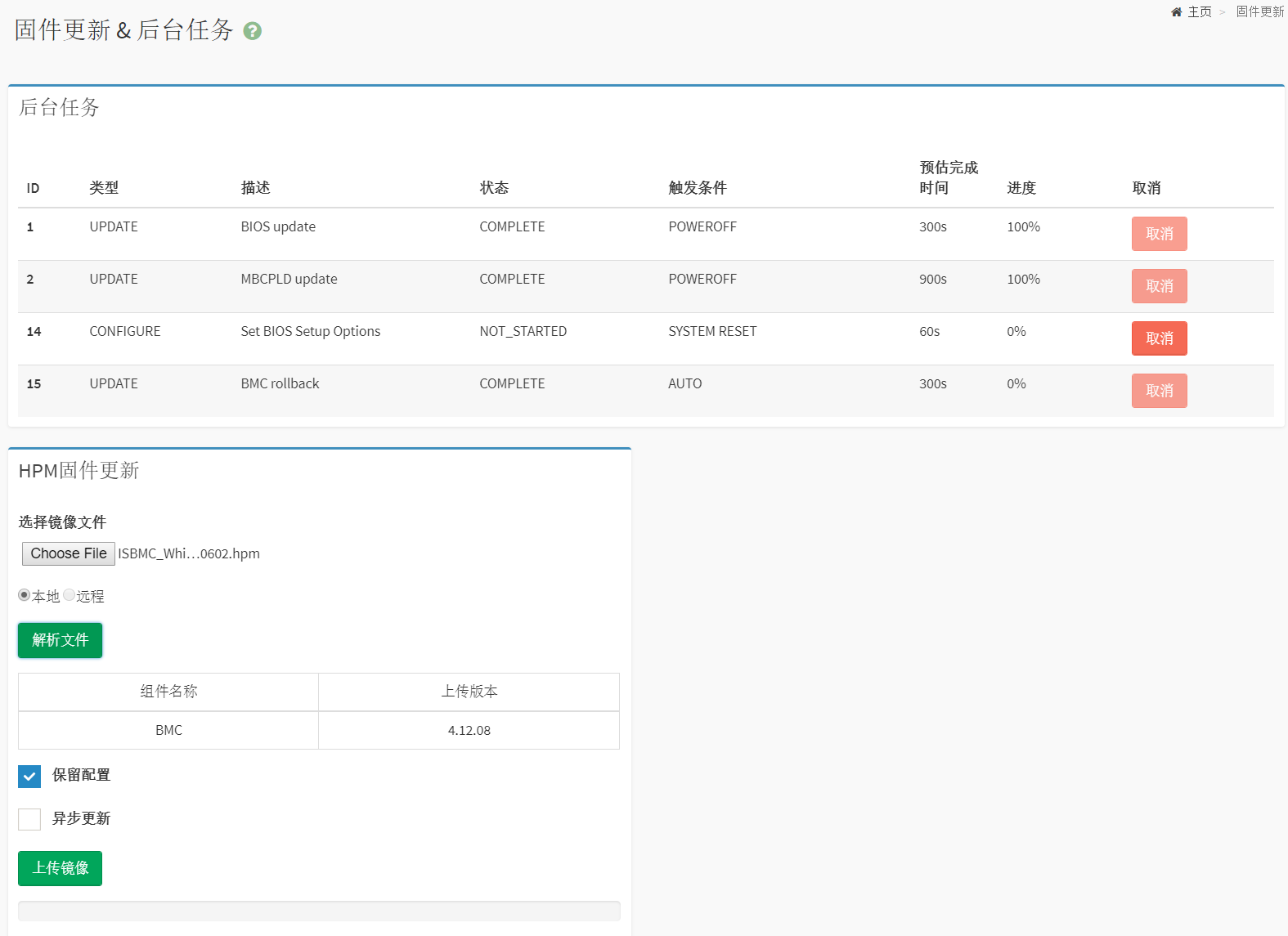 1、如果升级成功了任务还在,可以重启下BMC(重启BMC不影响业务)消除任务,路径是故障诊断——模块重启