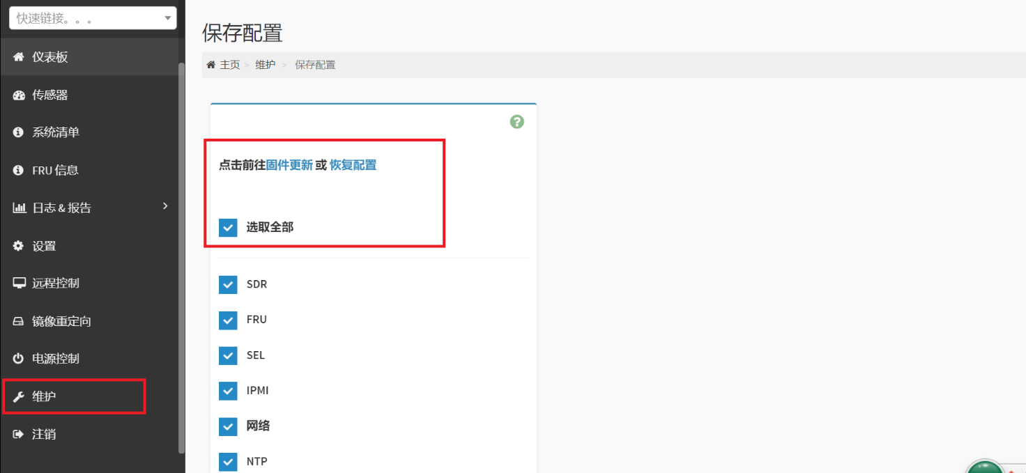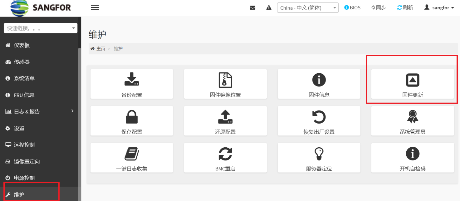 1.3、选择维护—>固件更新