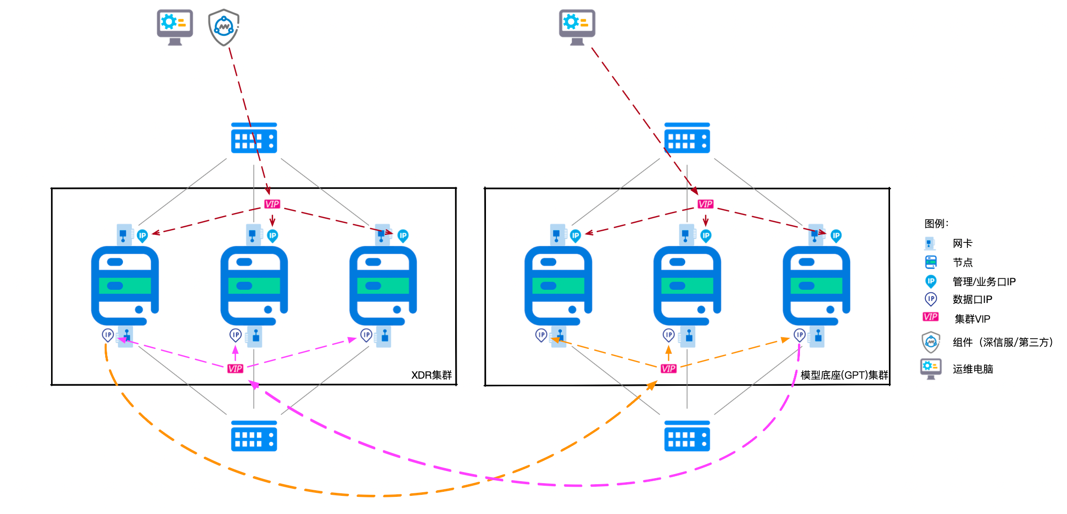 (5)XDR集群跟GPT集群对接时,使用数据口进行对接,需要XDR集群数据口到GPT集群数据口Vip以及GPT集群数据口到XDR集群数据口Vip双向放通相关的网络权限,请务必注意;