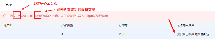 Q2:新增设备的时候提示“未找到该订单,请确认订单号或网关ID是否正确”?