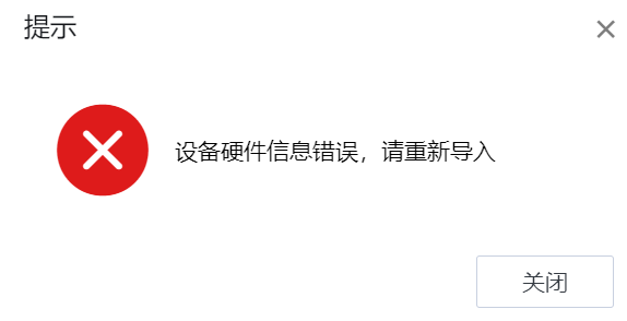 Q5:激活\更新授权时导出授权文件提示“设备硬件信息错误,请重新导入”
