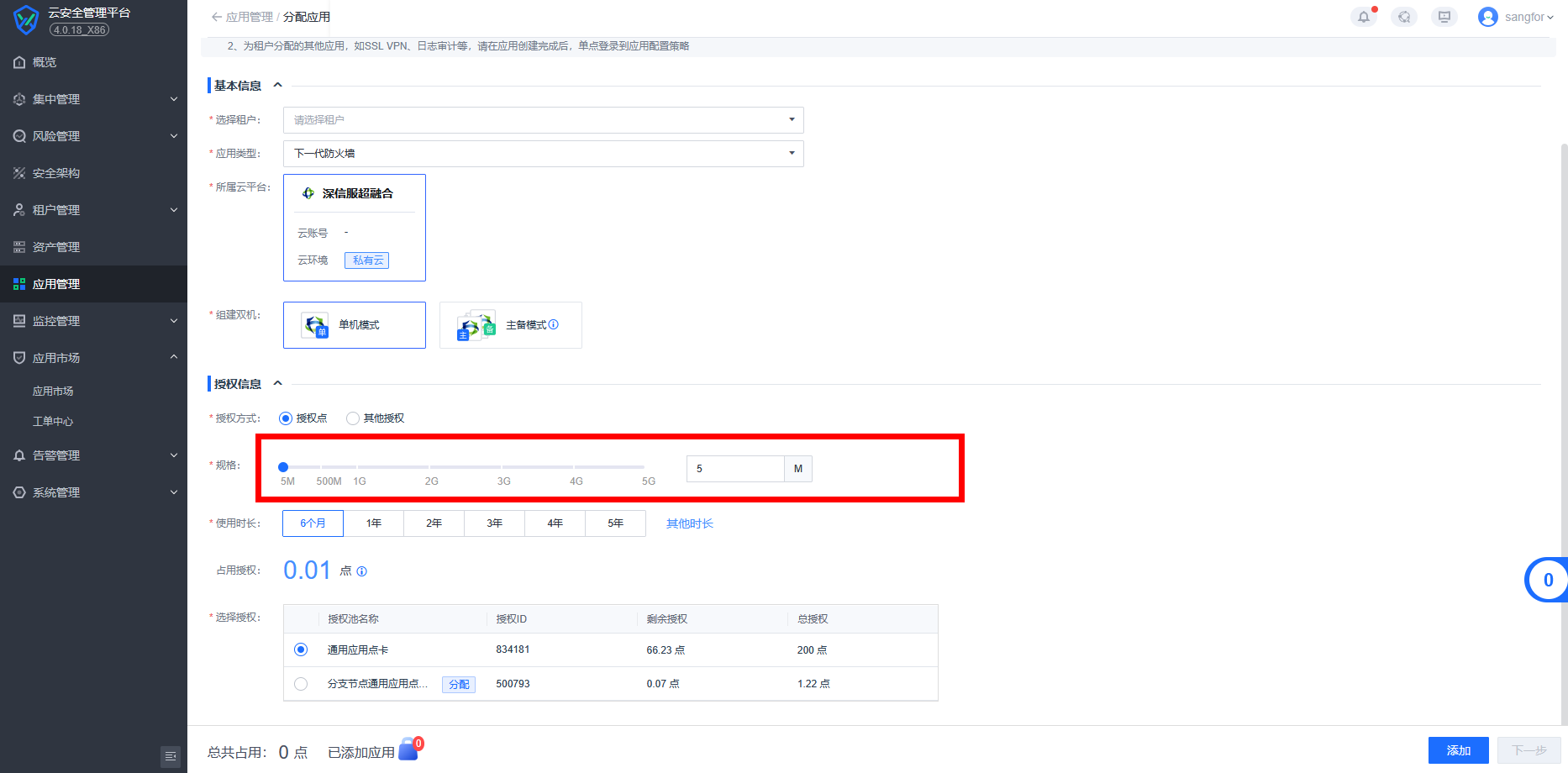 选择下一代防火墙并分配授权信息(部署授权一体)