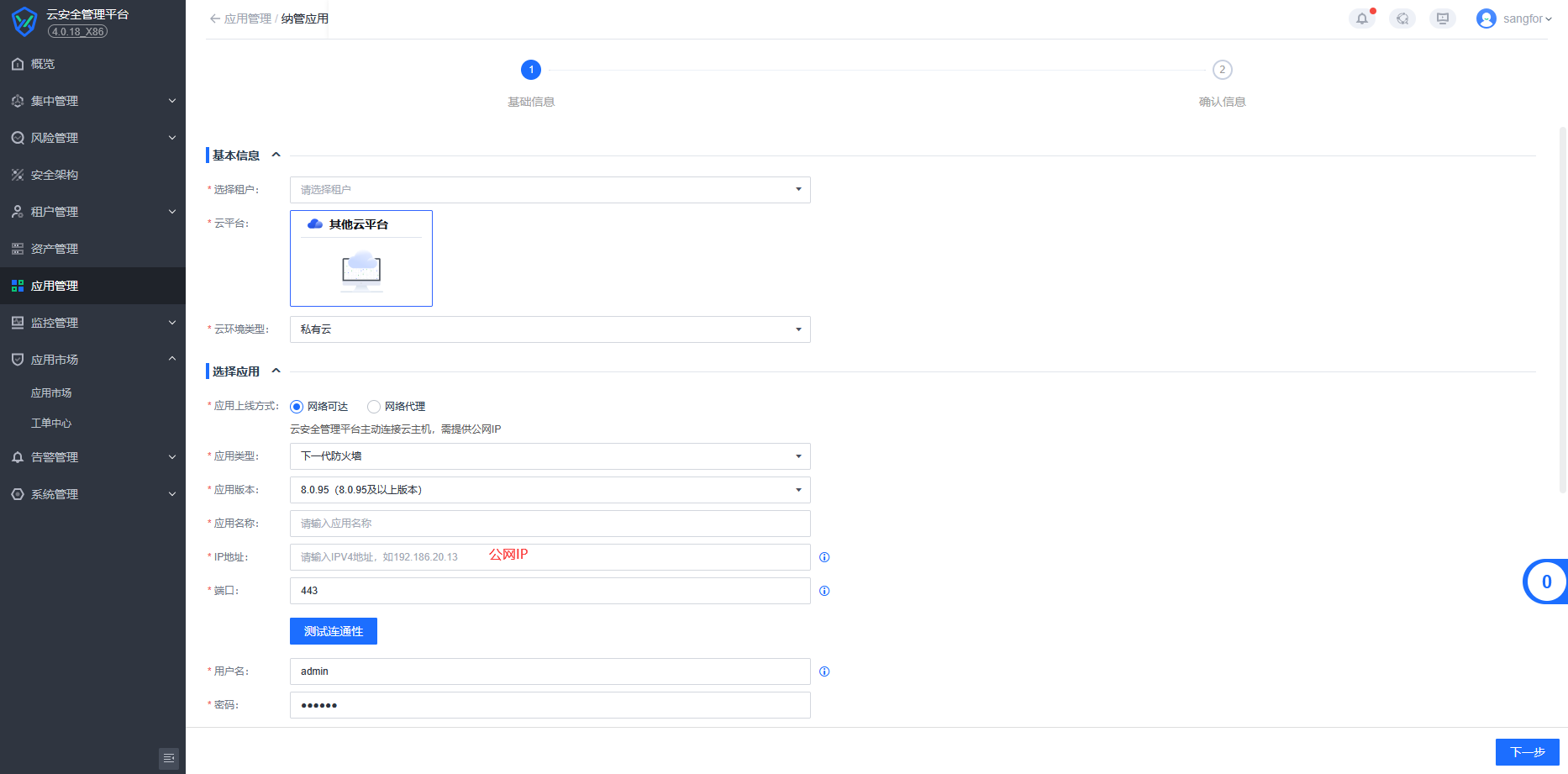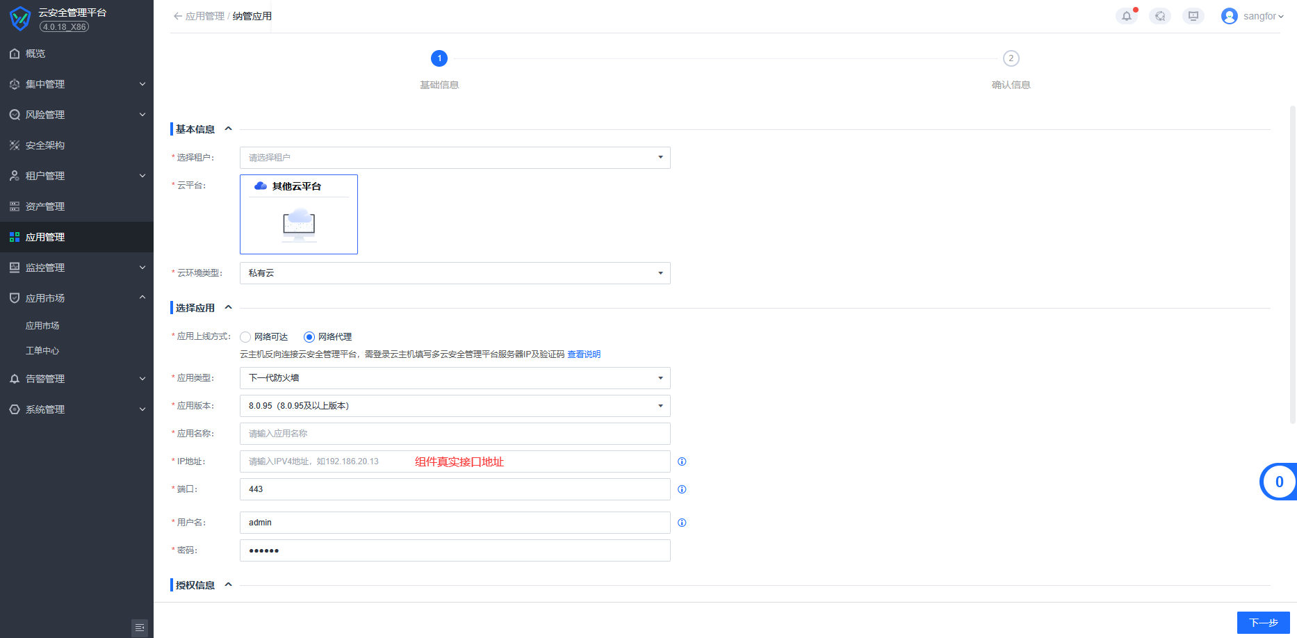 【纳管应用】:适用于需要将安全组件部署在客户其他云环境内部进行安全防护的场景,此时分为两种:已适配的云环境和未适配的云环境(其他云),授权方式也分为网络可达和网络代理两种