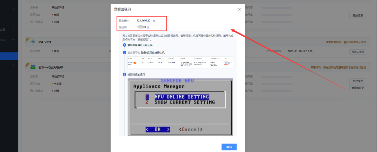 网络代理:vAF联网主动访问云图获取授权,vAF后台填写验证码进行验证