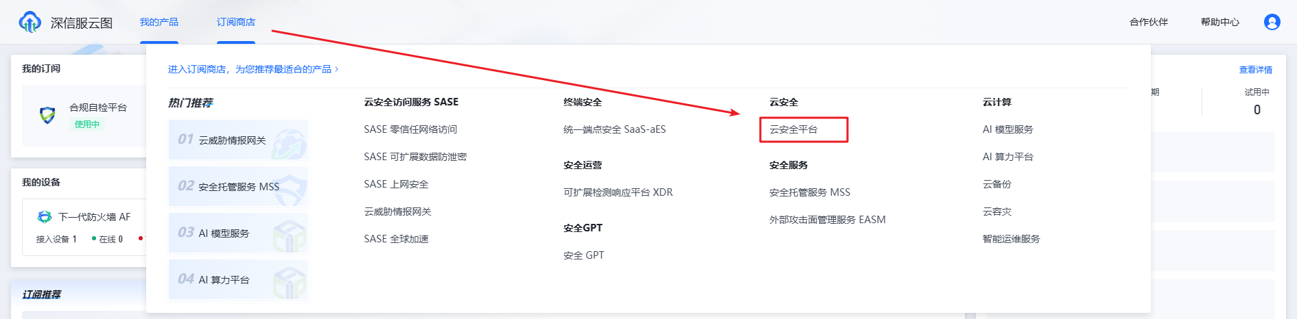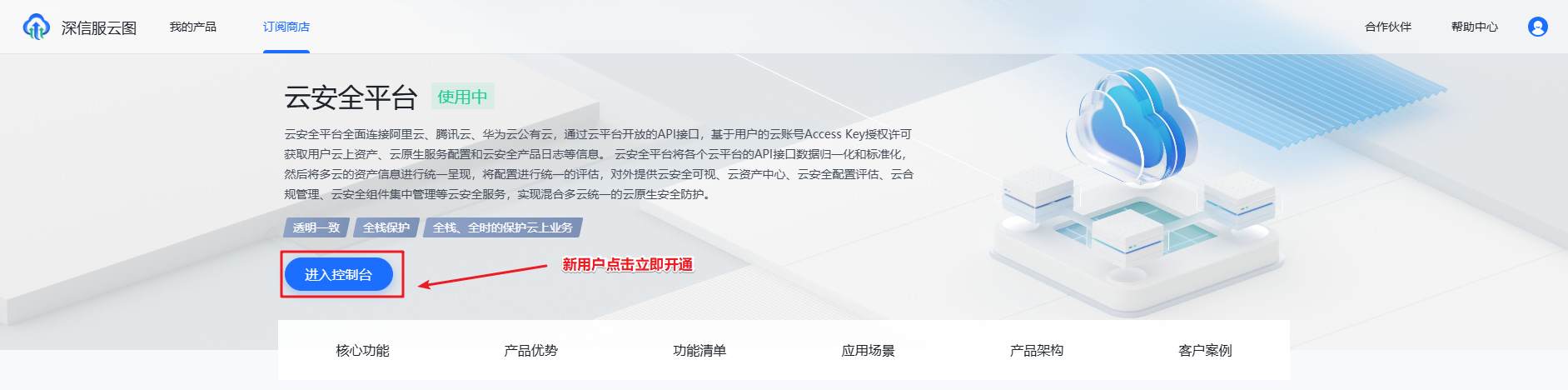 2、登录云图,订阅并进入云安全平台控制台