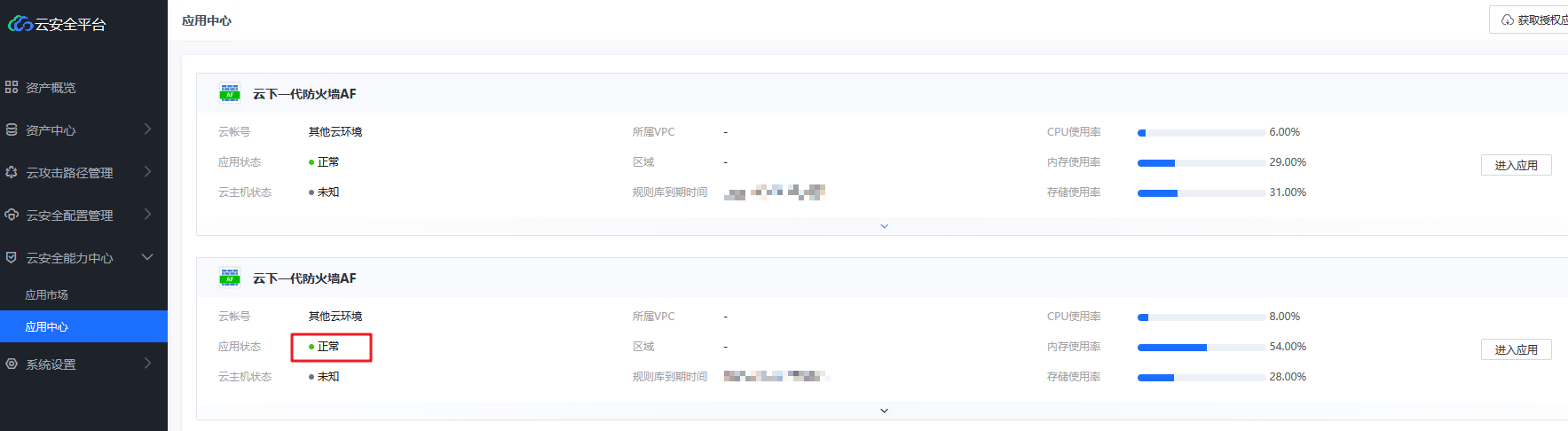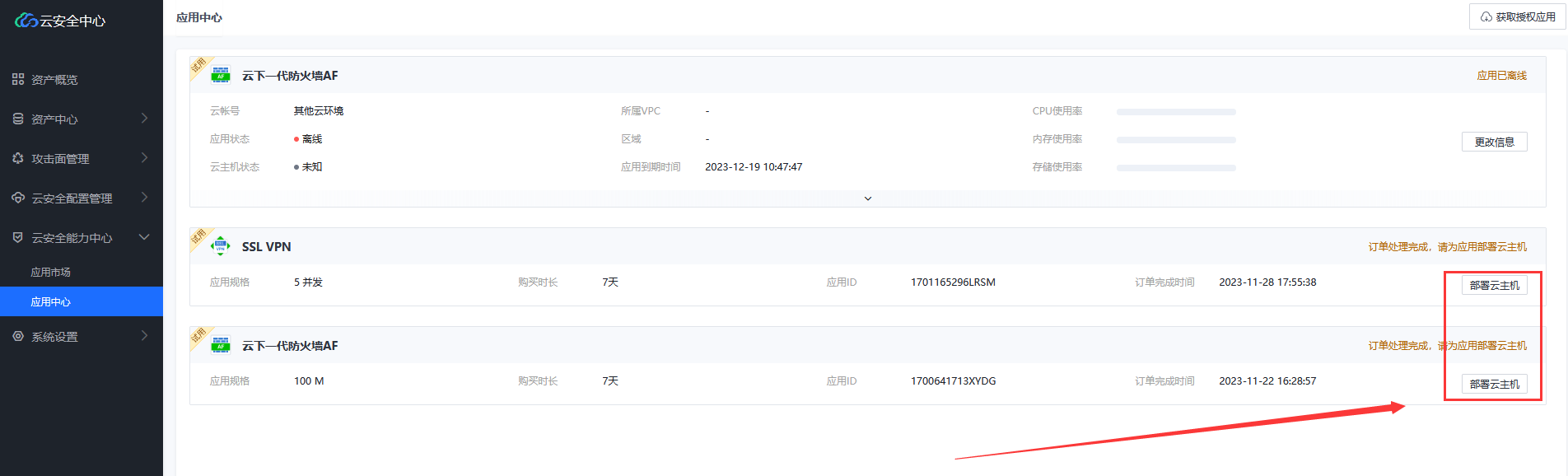 3、登陆云安全中心-【云安全能力中心】-【应用中心】