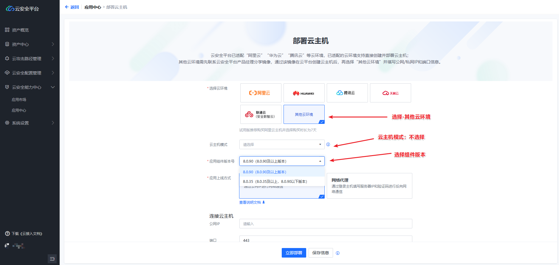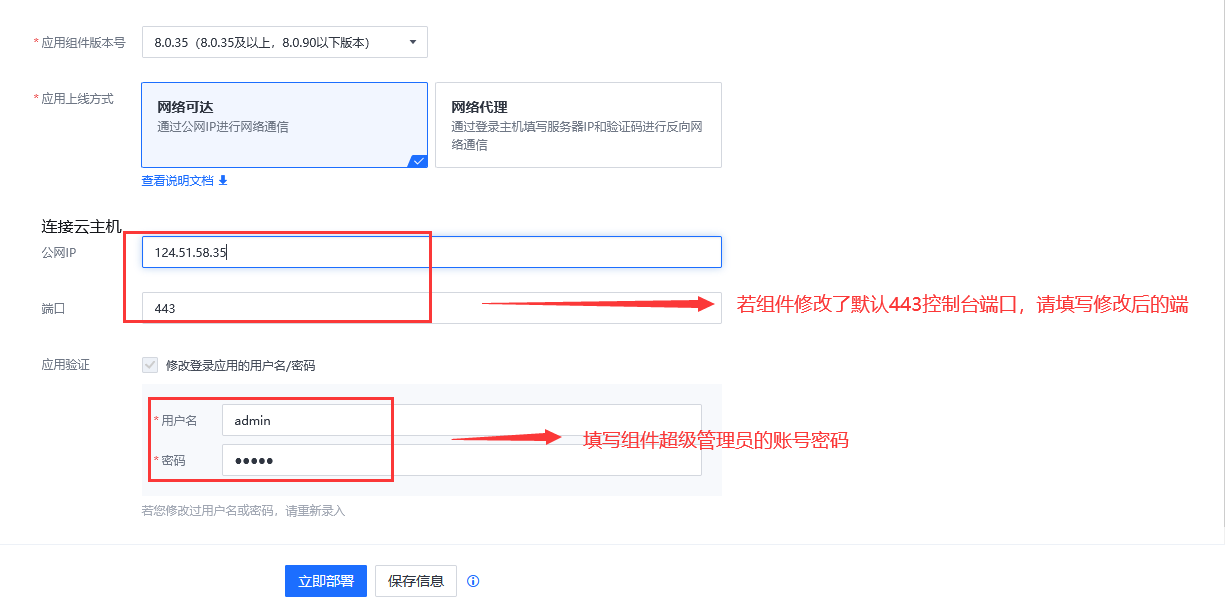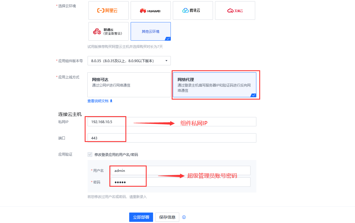应用上线方式:【网络可达】/【网络代理】