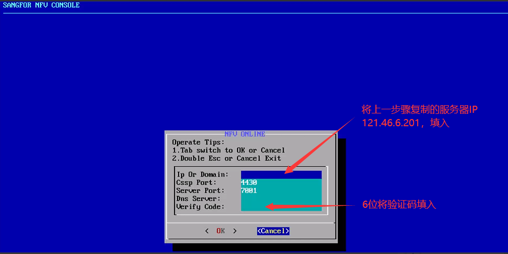 后台蓝色界面可使用快捷键alt+f8调出,选择1:NFV ONLINE SETTING