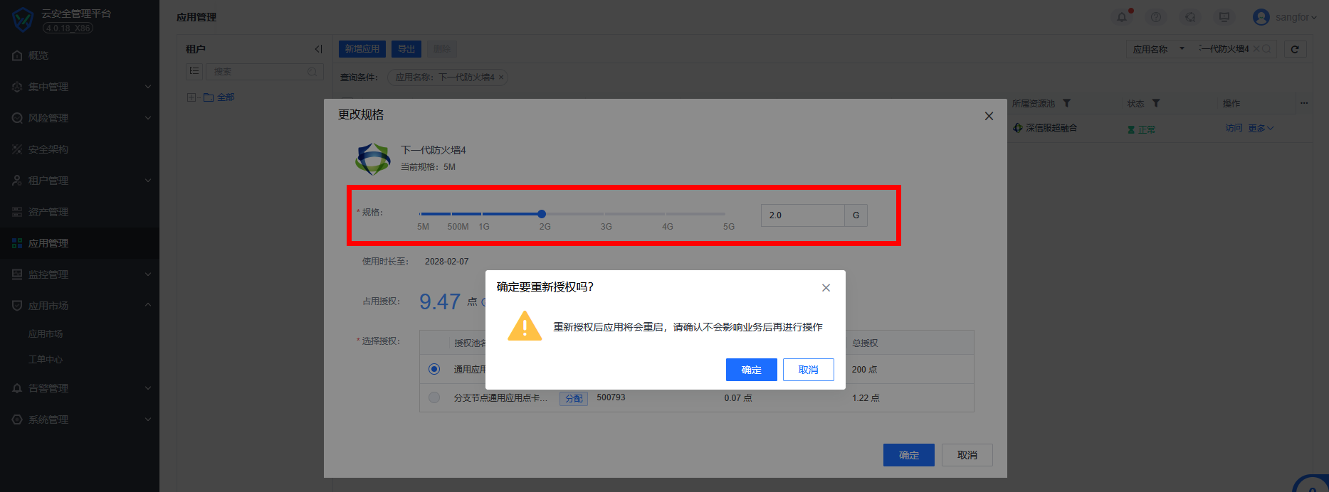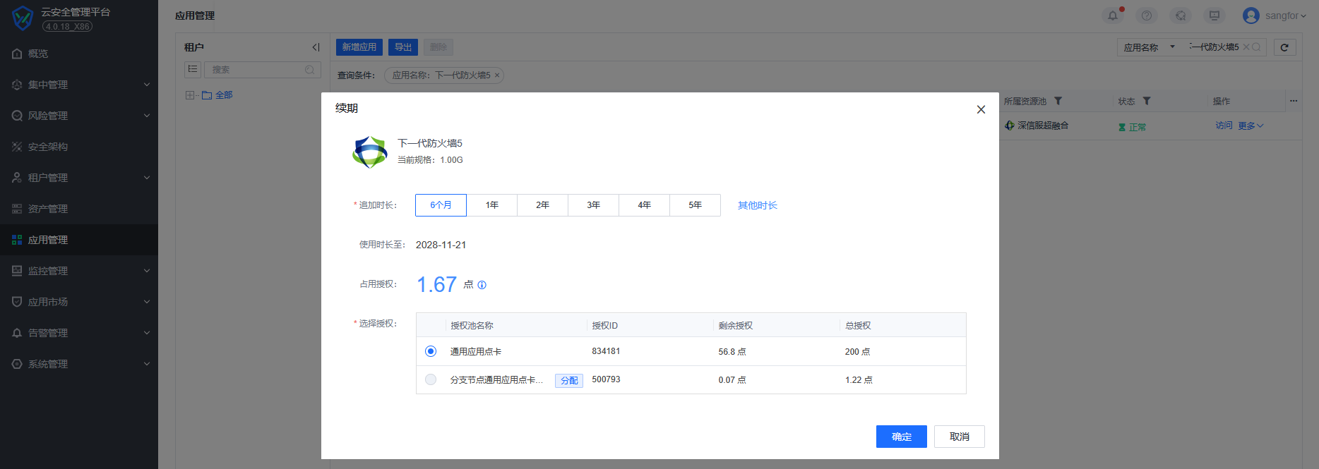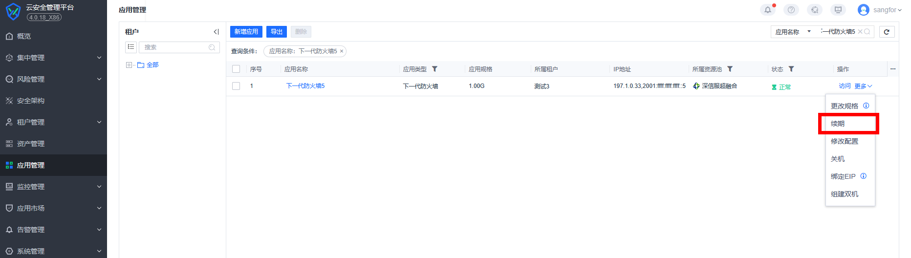 - 2、在【应用管理】中选择指定租户或区域的下一代防火墙应用