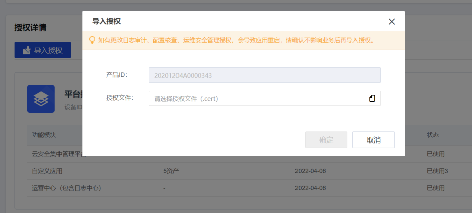 1、登录CSSP/XSEC平台,点击【系统管理】-【集群/平台授权】-【导入授权】完成平台授权