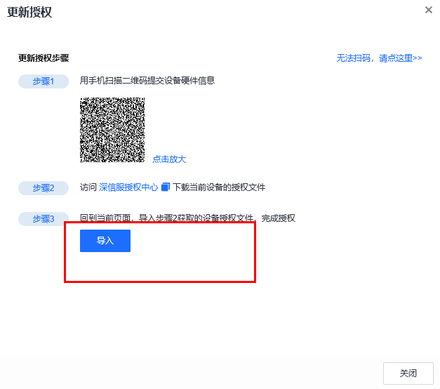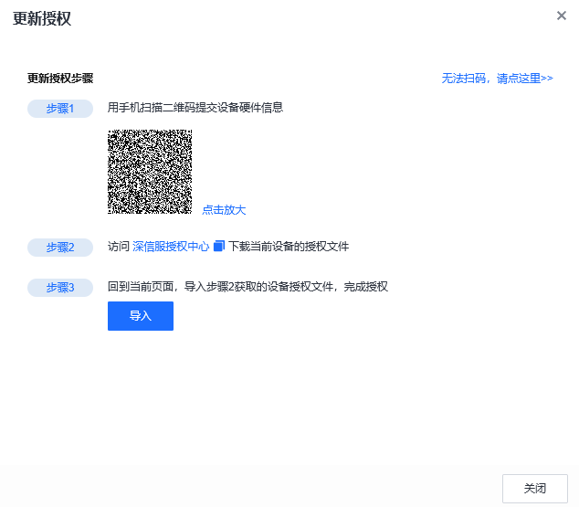 ①用手机扫描离线授权中的二维码,自动提交设备硬件信息