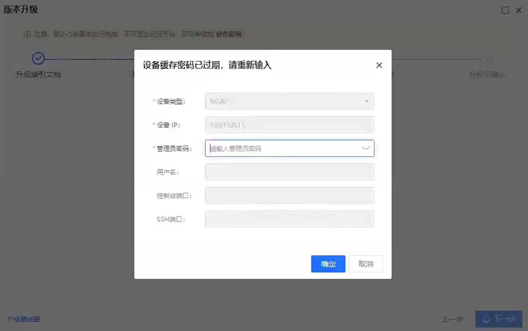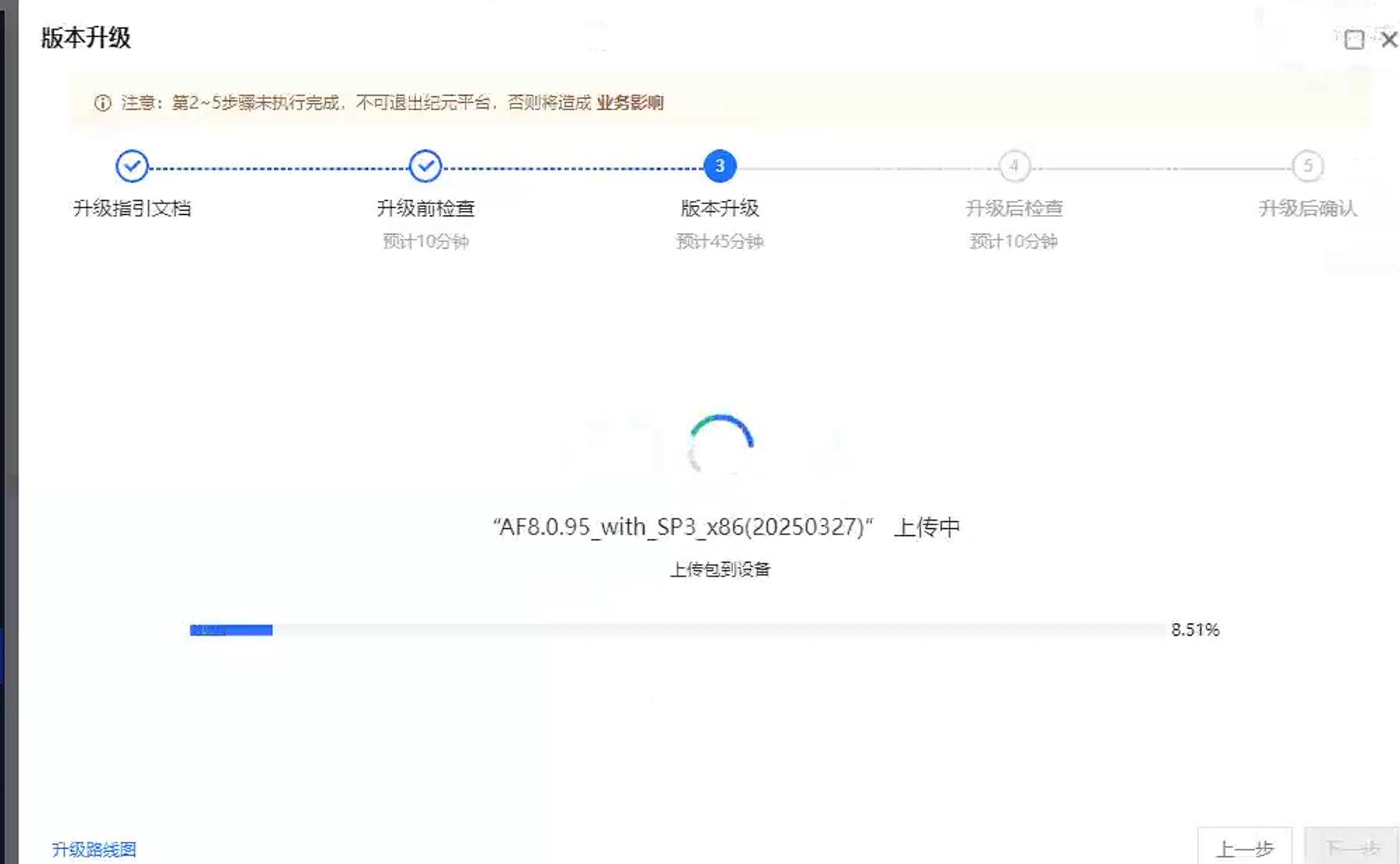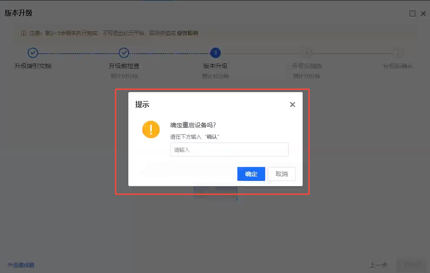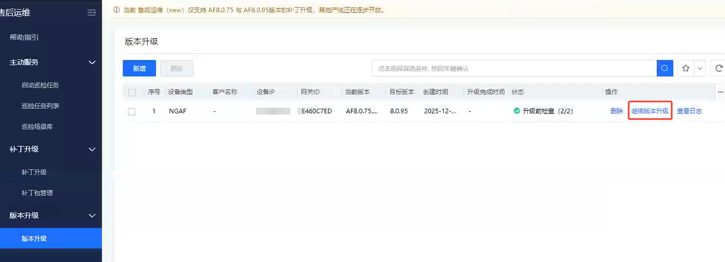 1. 前置检查后,确认所有异常全部处置完成后,可以进行设备升级,升级任务将会自动进行。