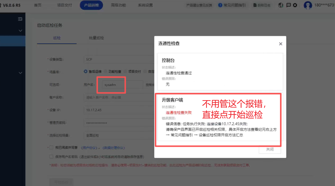 巡检SCP用户名:sysadm //无论是否修改,都要填写这个用户名(注意是sysadm,不是system)