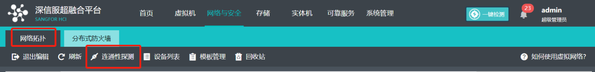 - 在[网络拓扑]页面中点击<连通性探测>,进入[连通性探测]页面。