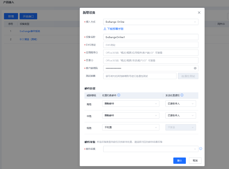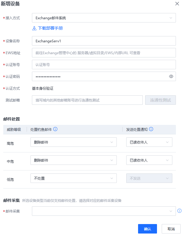 注:配置邮件处置策略的前提是前面已配置好exchange邮件采集策略。
