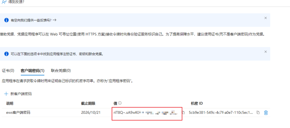9、进入[证书和密码/客户端密码]页面,点击<新客户端密码>新增客户端密码。