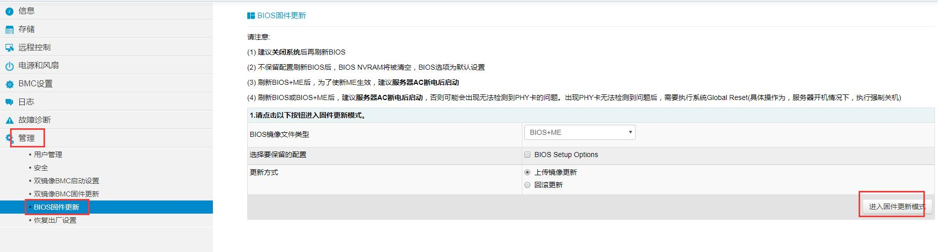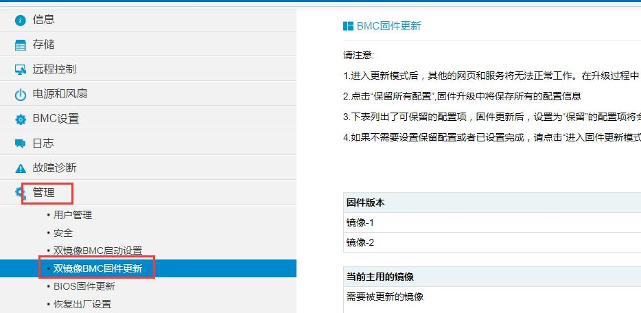 bmc下管理有bmc双镜像更新选项,则选择bin模式更新方法