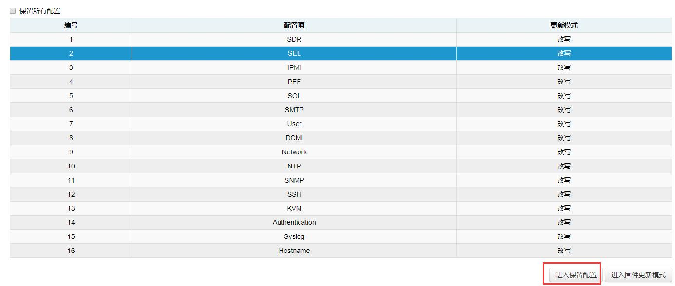 c、进入保留配置,可根据需求是否保留配置升级,然后点击右下角保存然后进入固件更新模式