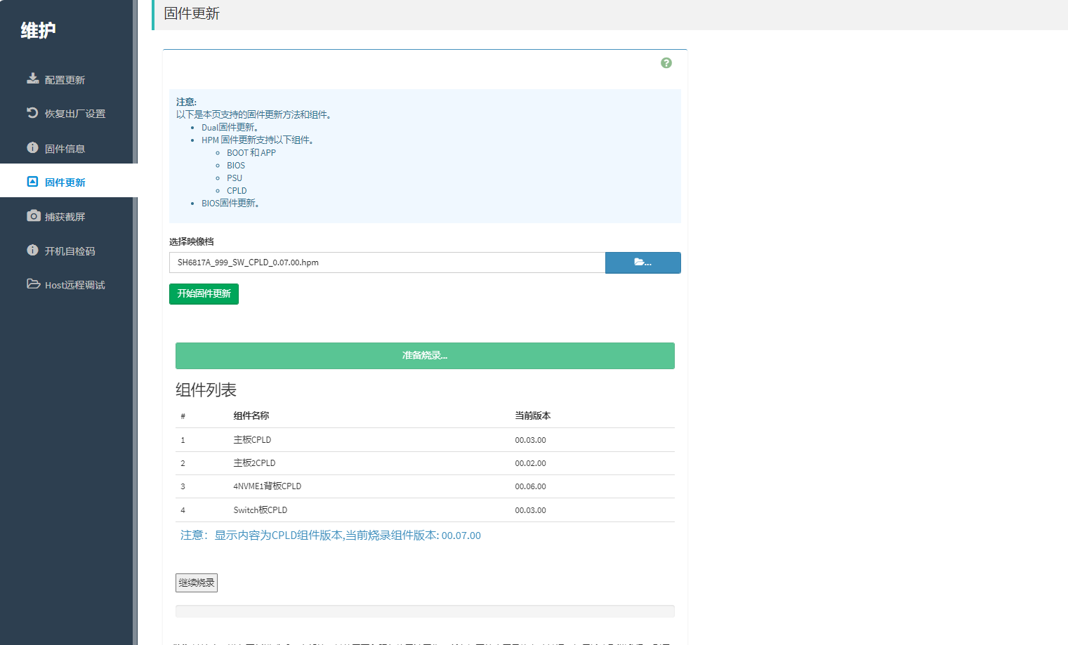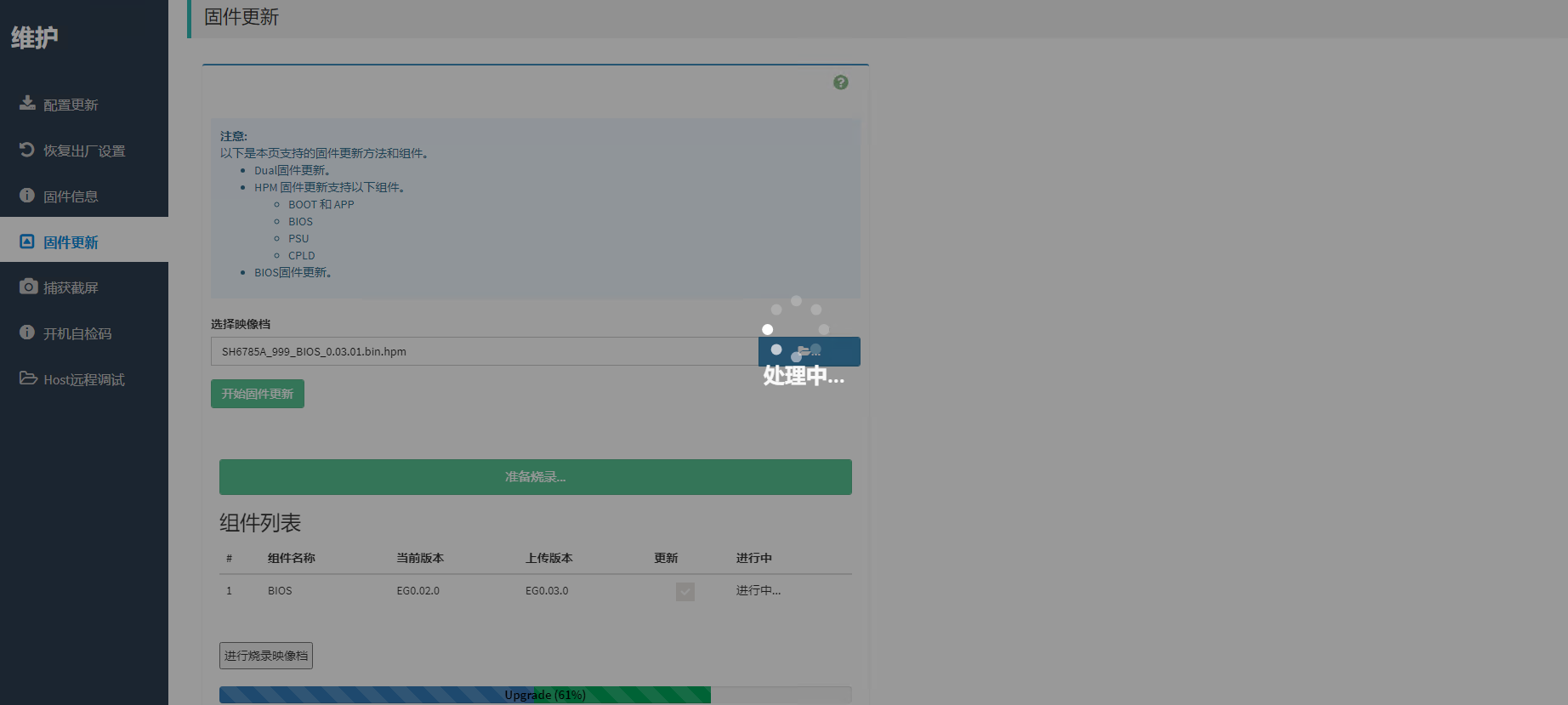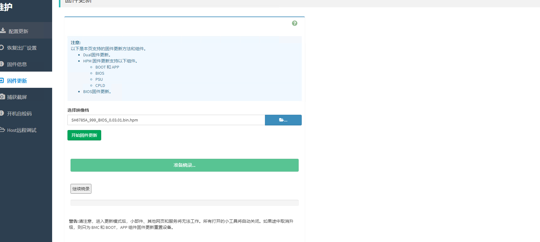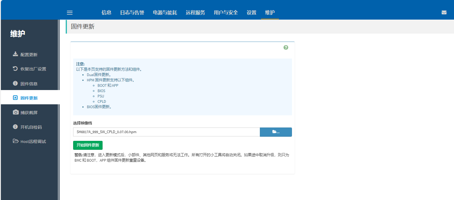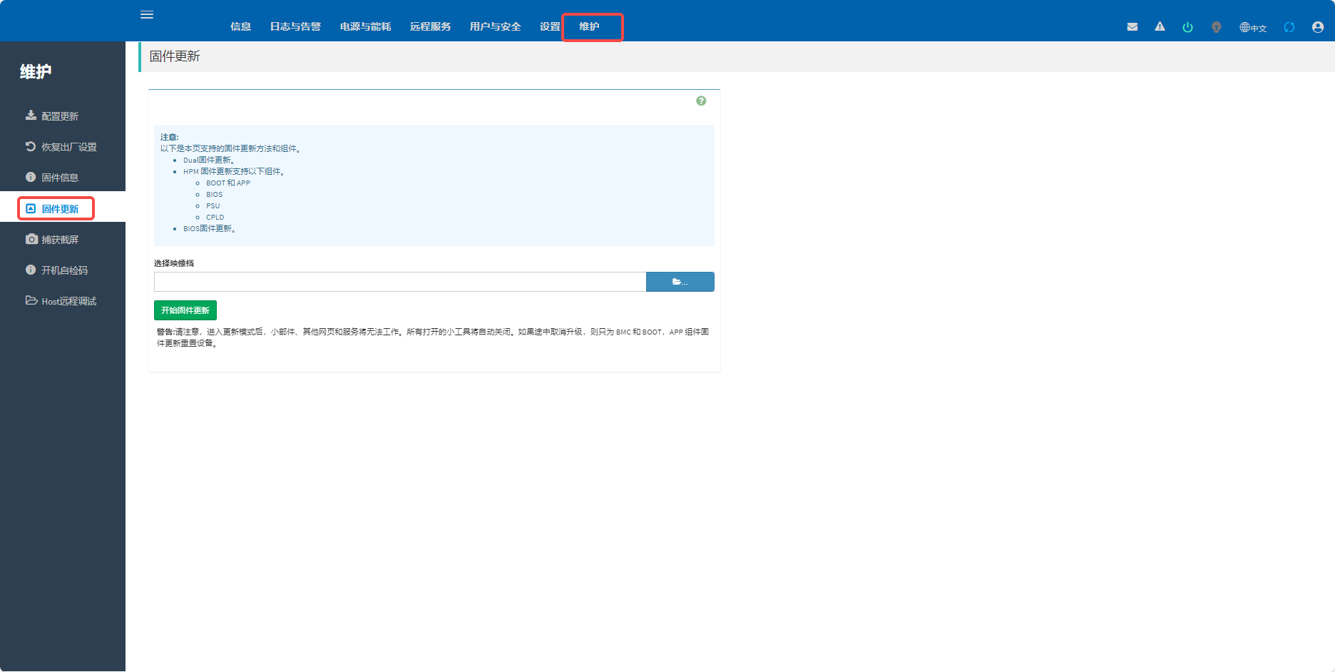 2.2、点击维护 →点击固件更新 →上传bios更新的固件包
