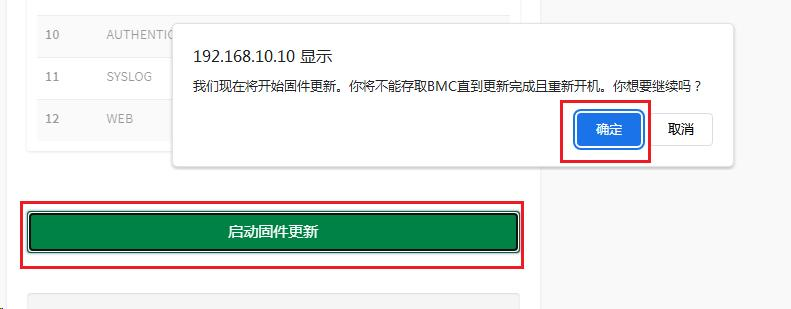 a、登录IPMI后进入维护->固件升级->选择MECS-6122_10610.BIN固件->开始固件更新