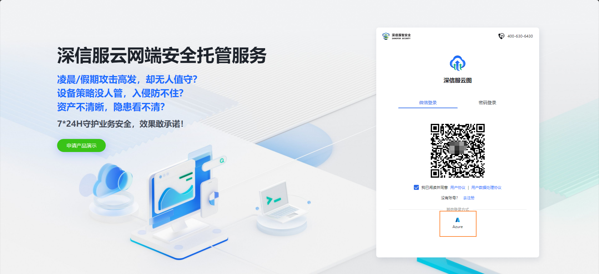 - 点击云图登录页的Azure登录图标,进入Azure登录页。