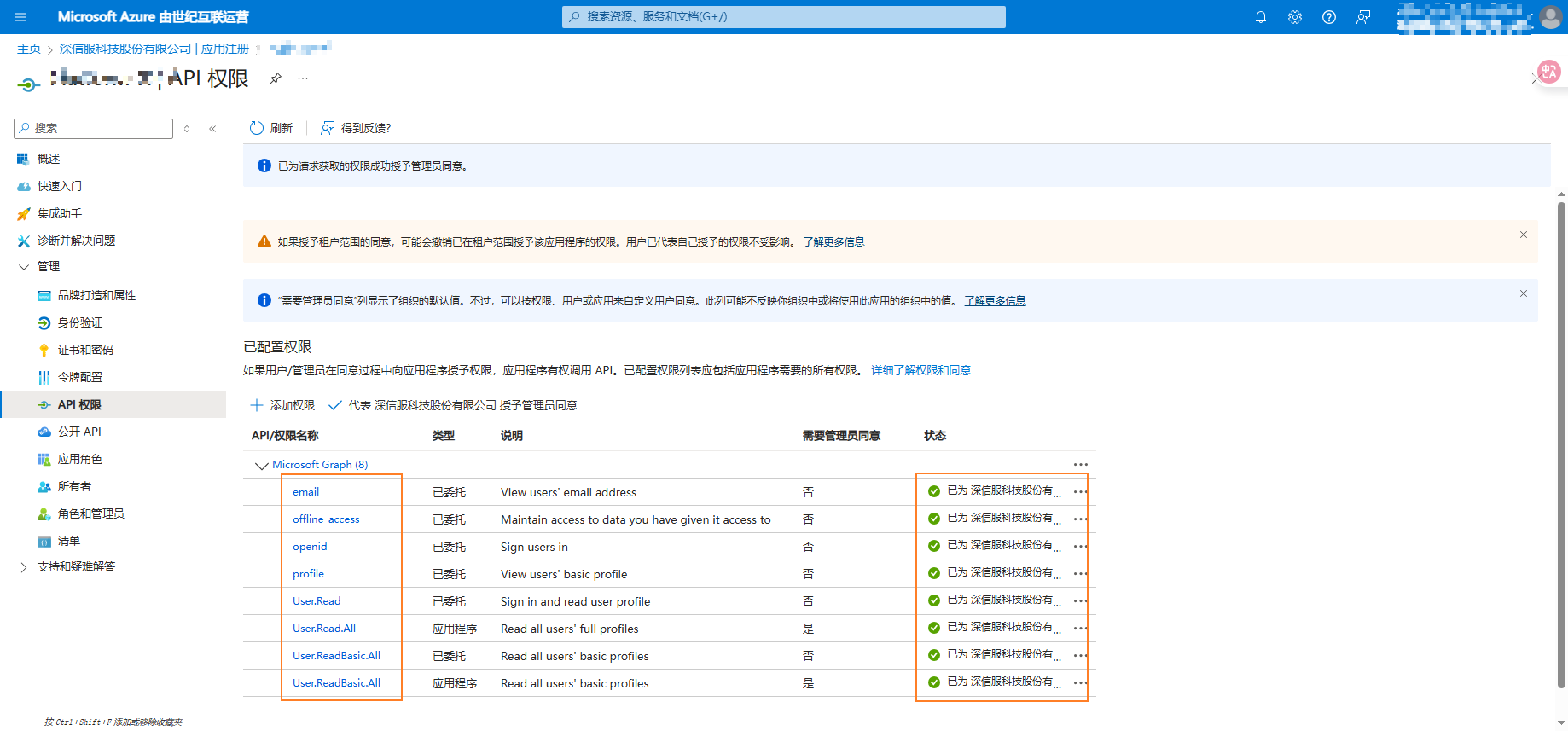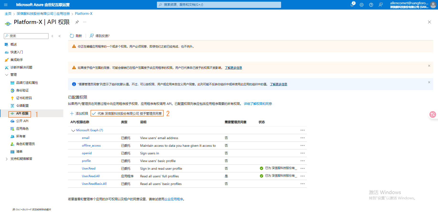 - 点击授予管理员同意