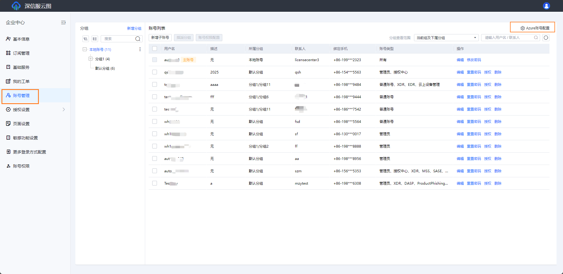 - 点击账号管理进入账号管理页,点击右上角的Azure账号配置按钮。