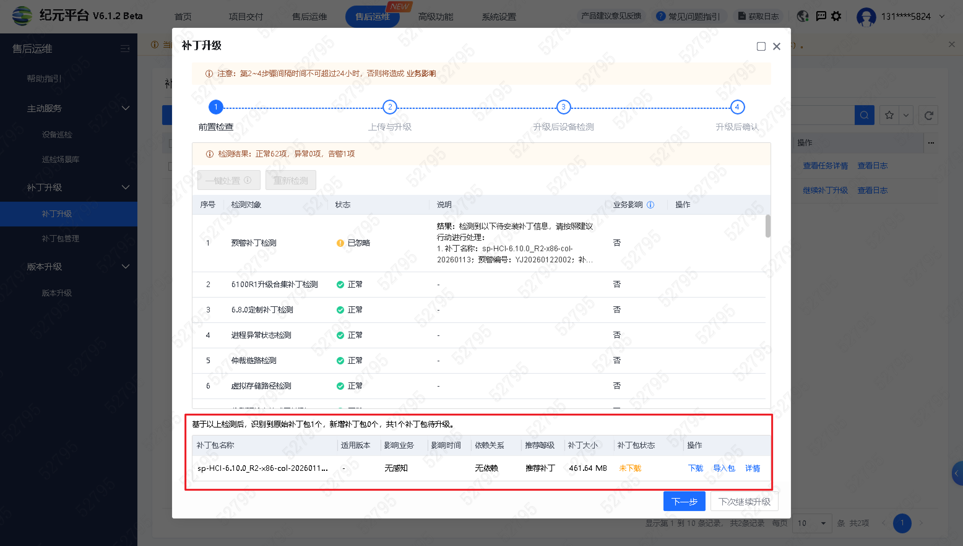 1. 前置检查结束后,会根据前置检查得到的补丁包列表依次按顺序进行升级