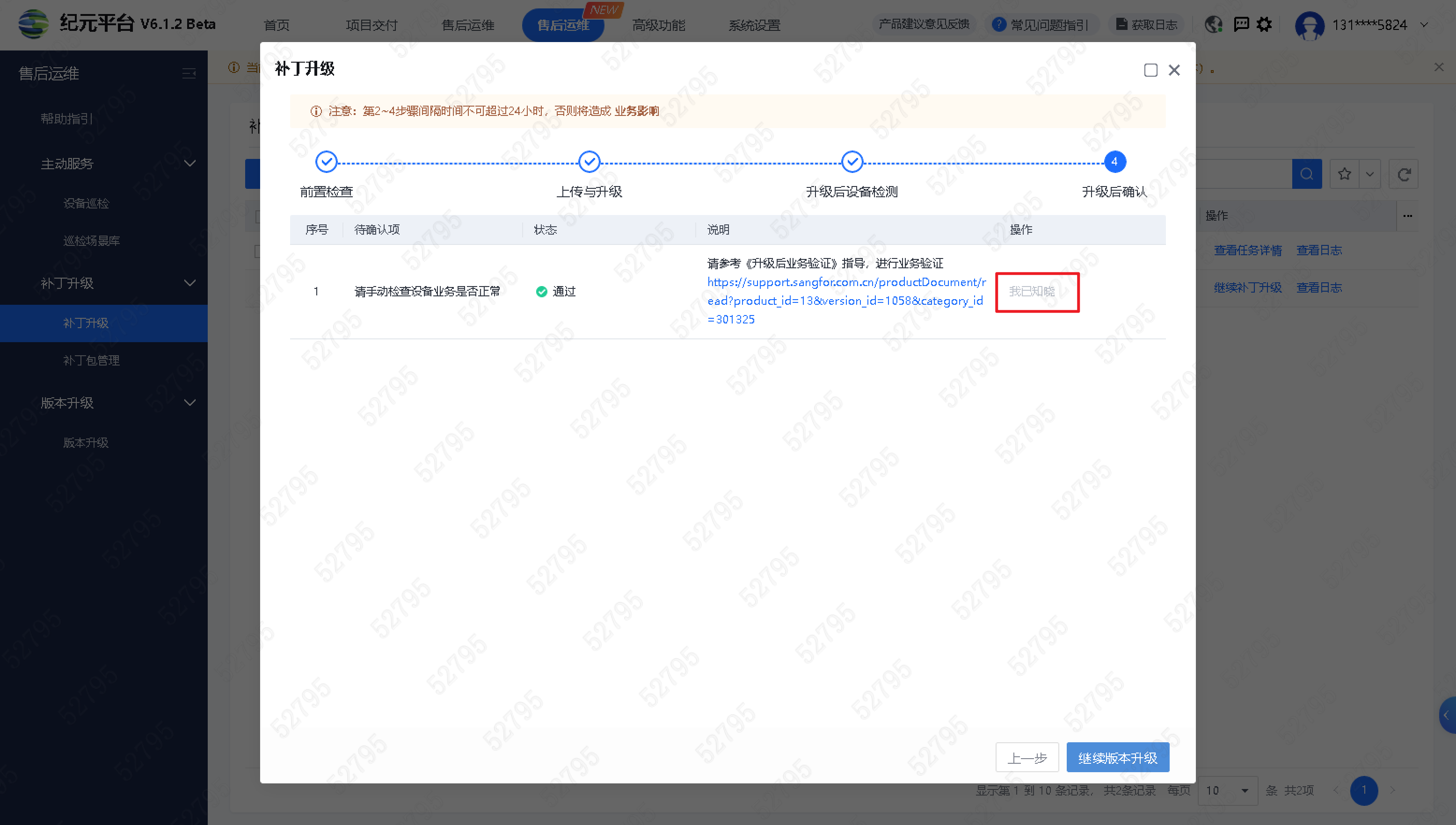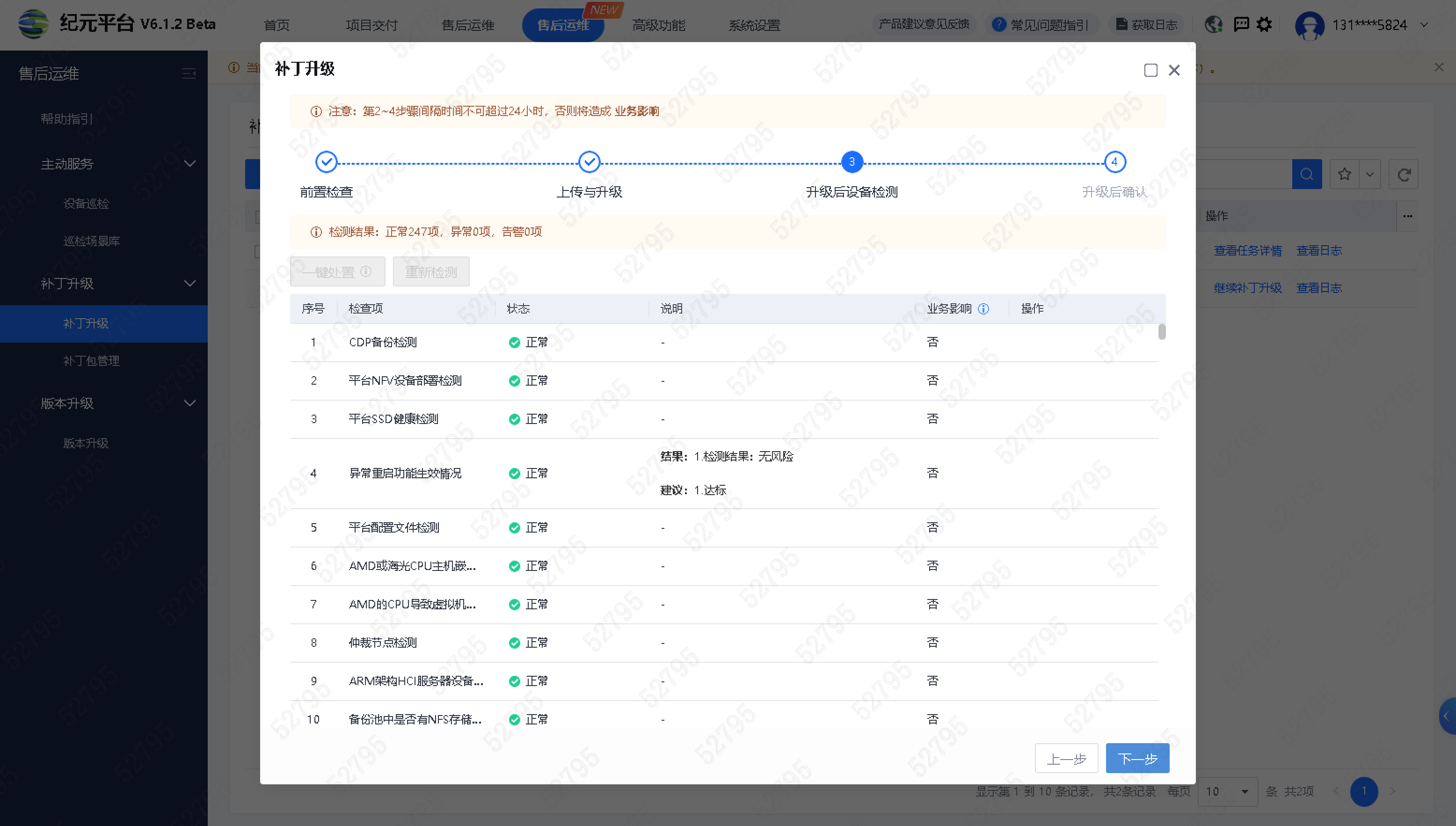【开始升级】点击后,若前置检查无异常,那么会自动执行所有步骤(步骤1~4)