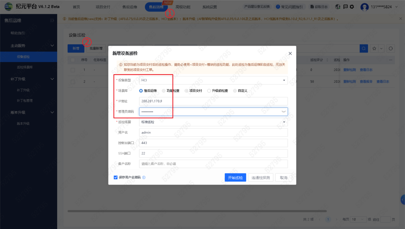 【升级完成,去巡检】:点击后会自动跳转到设备巡检见面,建议升级完成后,都进行一次全量巡检